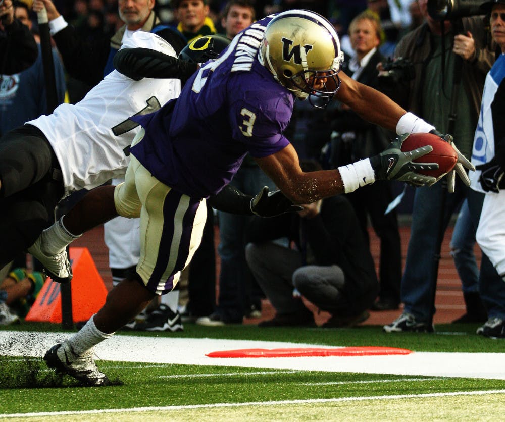 James Johnson dives for a touchdown in the fourth quarter of Washington's 43-19 loss to Oregon Oct. 24.