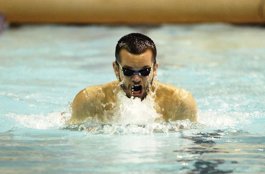 Jonathon Banker swimming the breast stroke during the 200 yard individual medley in a dual meet against Simon Fraser/Seattle U. UW is cutting its swimming programs, athletic director Scott Woodward announced today.
