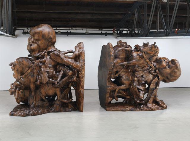 McCarthy’s focus on the abstraction of modernist art is mimicked by his interest in disrupting pop culture’s representations of fairy tales. Physical twists and turns in his woodwork are modeled after the twists and turns in the stories themselves. Up close, these pieces appear less like wood than disjointed rock formations or clay that’s been squeezed between fingers, again adding to the abstraction McCarthy is creating.