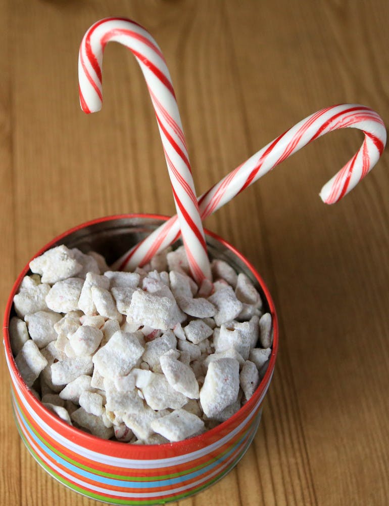 5. Zip the bag up tight and shake the bag until candy canes and powdered sugar are evenly distributed. Serve in a festive bowl or enjoy straight from the bag.