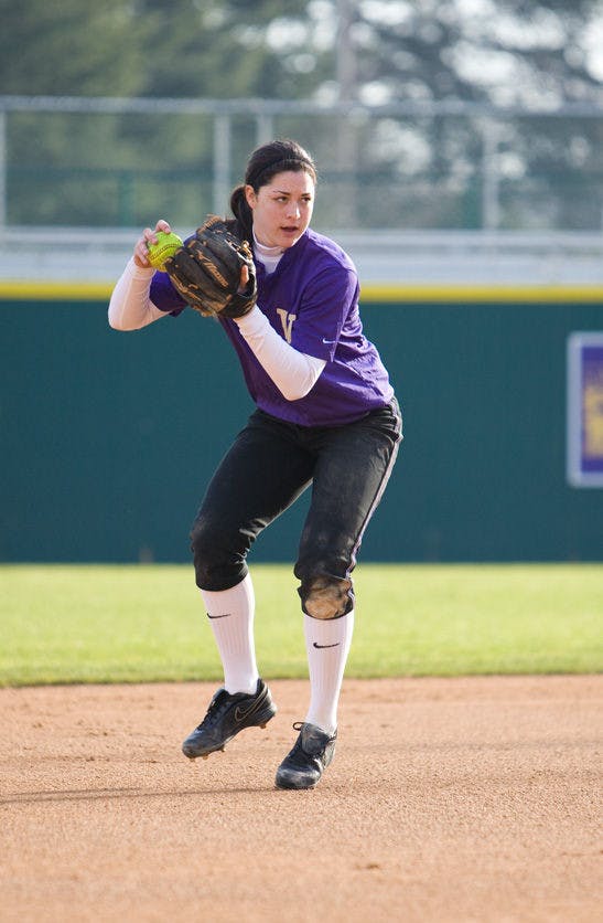 Sophomore shortstop Morgan Stuart throws during practice Feb. 3.