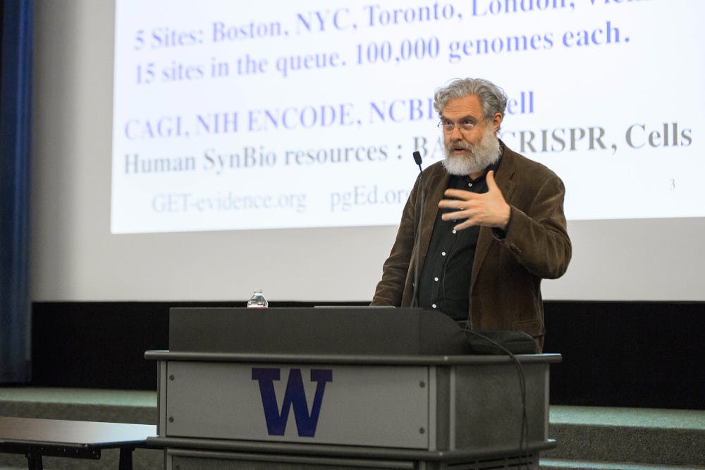 On Thursday afternoon, the Science in Medicine Lecture Series, hosted by the UW School of Medicine, concluded with its Annual Lecture, honoring George Church, Ph.D., a Harvard professor of genetics, for both the broad range and depth of his cross-disciplinary research.