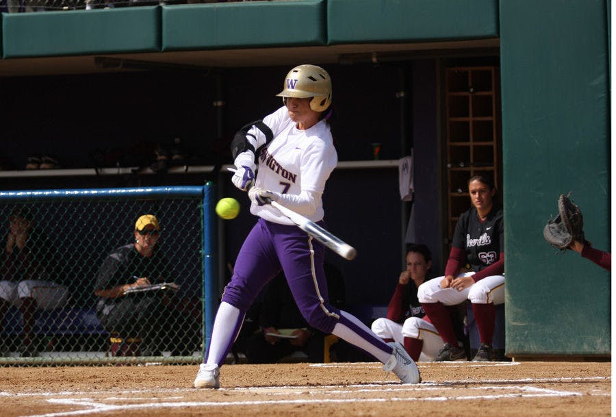 Jenn Salling takes a cut during the Huskies' 3-2 victory over ASU April 5.