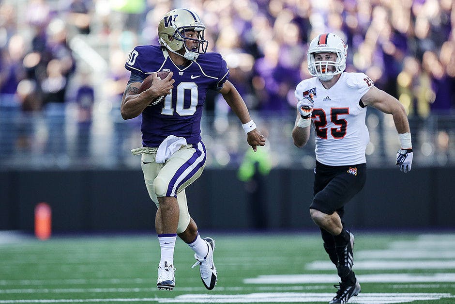 Cyler Miles carries the ball against Idaho State on Sept. 21, 2013. Miles was reinstated to the team Wednesday after being suspended for his role in a pair of post-Super Bowl incidents.