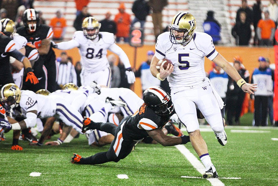 Sophomore quarterback Jeff Lindquist has split reps with freshman Troy Williams this spring while they await a final decision on Cyler Miles.