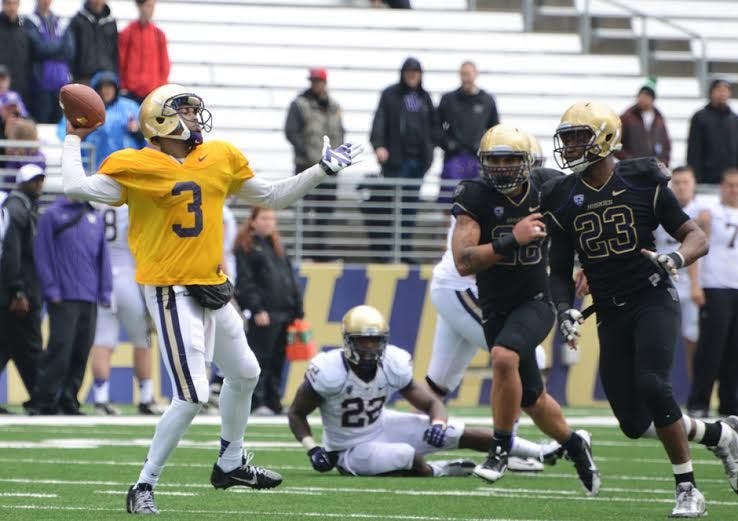 Troy Williams is pursued by Marcus Farria (23) and Psalm Wooching in the Spring Game on Saturday.