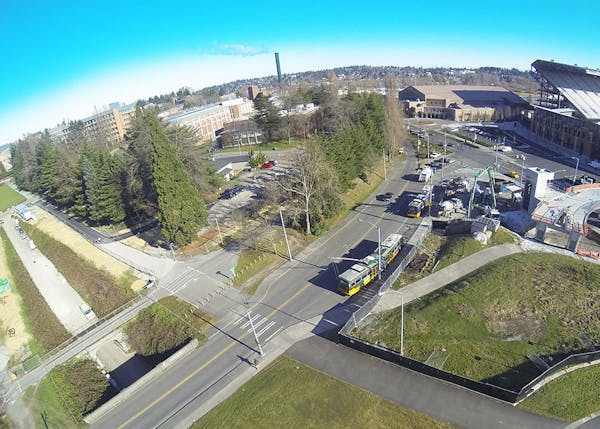 image: Start of Montlake Triangle land bridge construction means Burke-Gilman detour