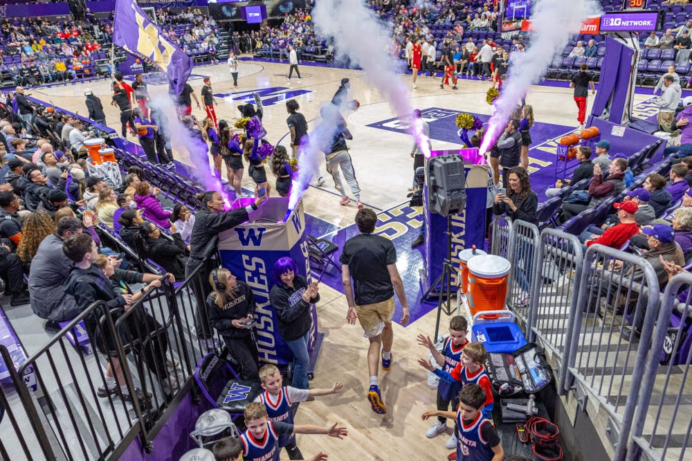 Washington Men's Basketball team runs out from the tunnel before the Huskies take on Nebraska on February 5th, 2025 inside of Alaska Airlines Arena.