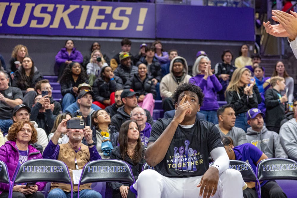 Washington forward Great Osobor prays before the Huskies take on Nebraska on February 5th, 2025 inside of Alaska Airlines Arena.