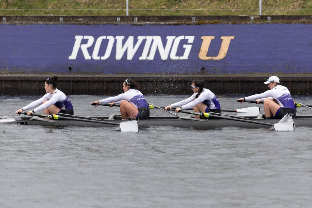 Rowers participate in the second varsity four race in the Husky Open Regatta on Mar. 8, 2025 on the Montlake Cut.