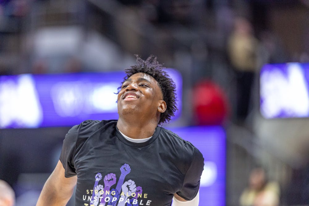 Washington foward Great Osobor smiles before the Huskies take on Nebraska on February 5th, 2025 inside of Alaska Airlines Arena.