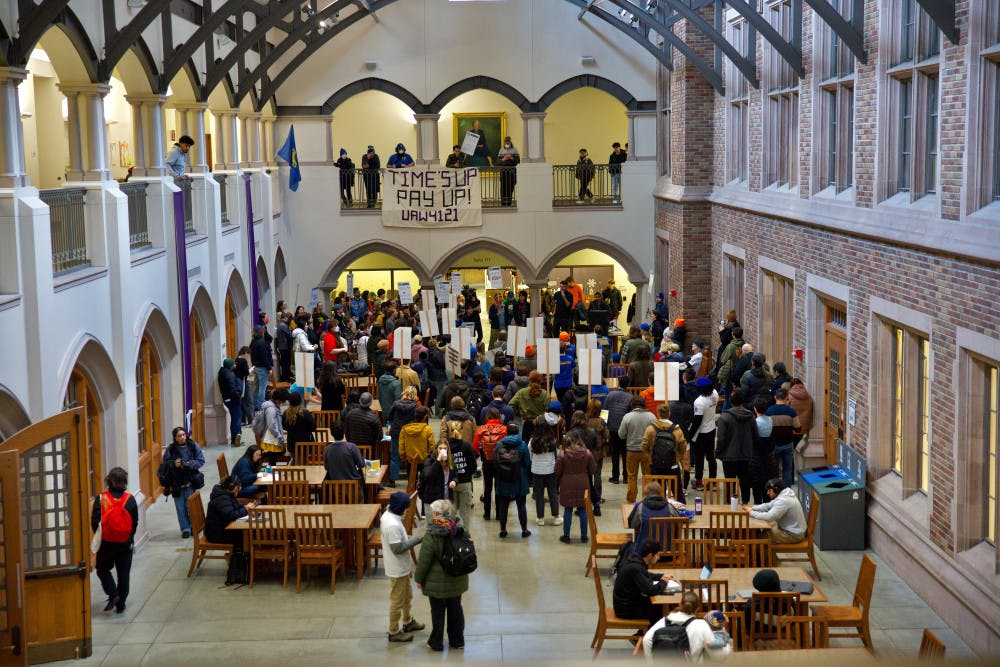 Olivia Krolczyk prepares to host TPUSA's event on Jan 21, 2025 in Thomson Hall. The event was cancelled shortly after.