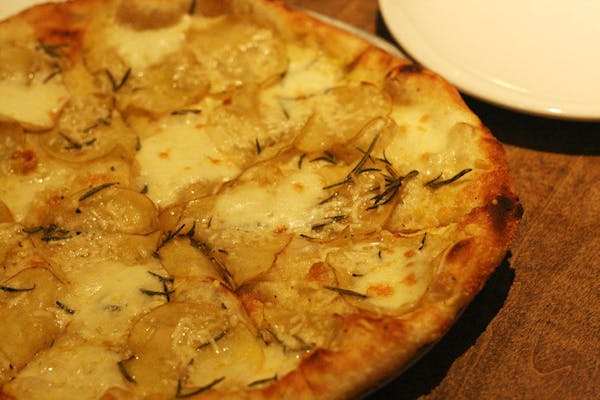 52b19f0cbcb641e75d716135e6a2a9d3.jpg The "Yukon Gold" pizza includes thin slices of potatoes.