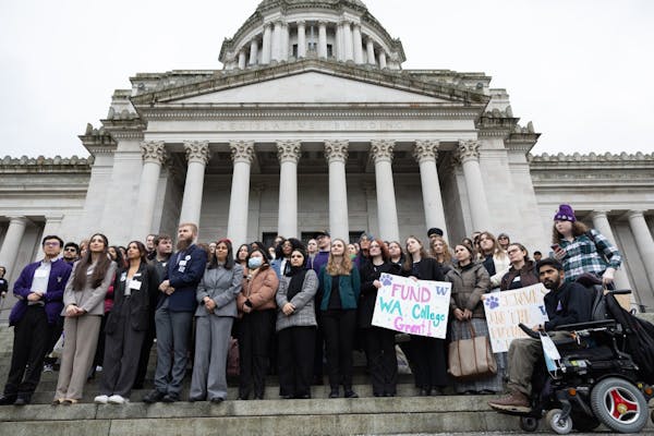 763c9686942955117dbcfe095a4bc956.jpg Students wait on the steps of the Washington State Capitol Building to hear from special guest speakers for the Huskies on the Hill event on Feb. 3, 2025.