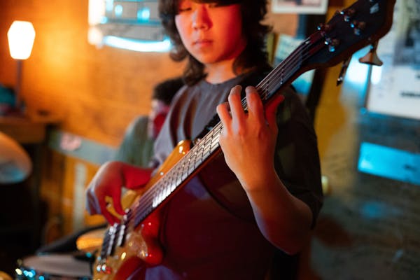 4afd0b757401ae96014f79596347b8c6.jpg Joonho Choi performs on bass on Jan. 23, 2025 in The Daily's newsroom for the second edition of the 2025 series of Orange Room Sessions.