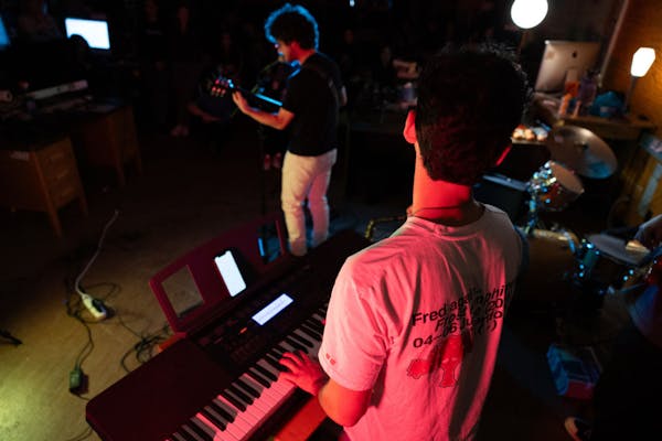 bb99c703d5d9b78478b2b5f326e6c26d.jpg Leo Freedman plays on keys while Zack Leeb performs on guitar and vocals on Jan. 23, 2025 in The Daily's newsroom for the second edition of the 2025 series of Orange Room Sessions.