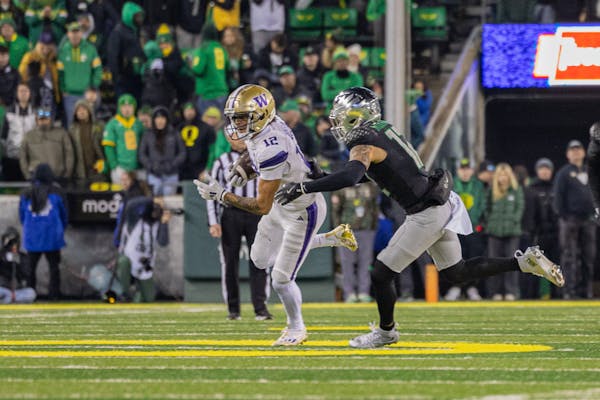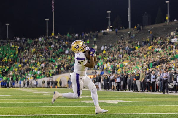 34060dce69d624584f20bbae7726e146.jpg Washington wide reveiver Giles Jackson catches a touchdown pass against the #1 ranked Oregon Ducks at Autzen Stadium in Eugene, Oregon on Nov. 30th, 2024.