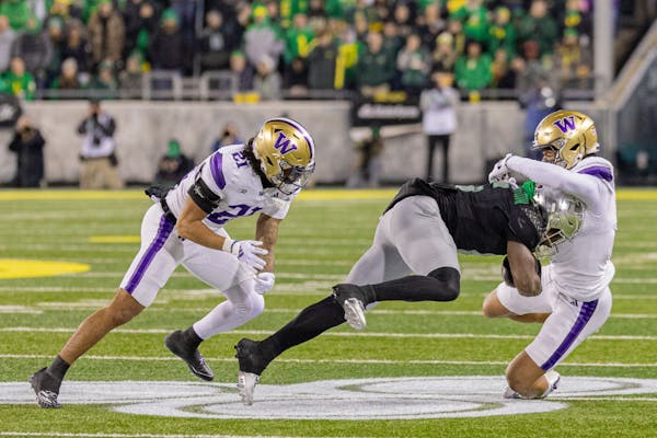 b555472ad03b9ed5b92f0e06f750a94d.jpg Washington defense stops a forward run against the #1 ranked Oregon Ducks at Autzen Stadium in Eugene, Oregon on Nov. 30th, 2024.