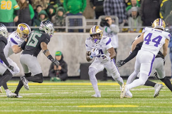 7241ee742abde87da688efd587262aa9.jpg Washington running back Daniyel Ngata rushes the football against the #1 ranked Oregon Ducks at Autzen Stadium in Eugene, Oregon on Nov. 30th, 2024.
