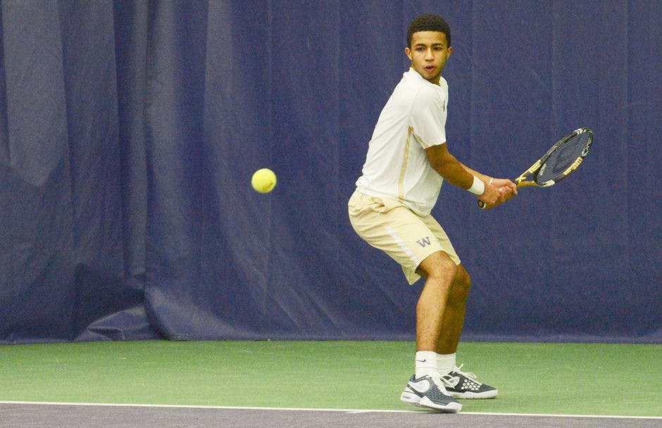 After eight days of practice with the Huskies, freshman Daffra Sanon won his first collegiate match Thursday in straight sets.