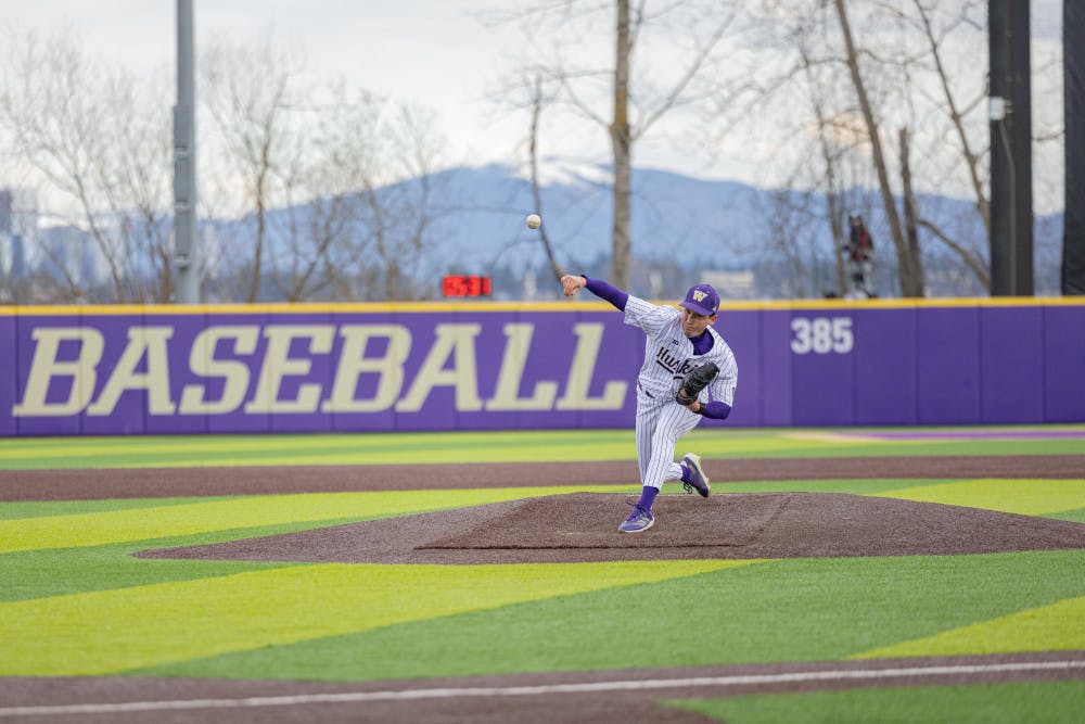 Washington pitcher Gunnar Nichols pitches against PLU at Husky Ballpark on March 18th, 2025.