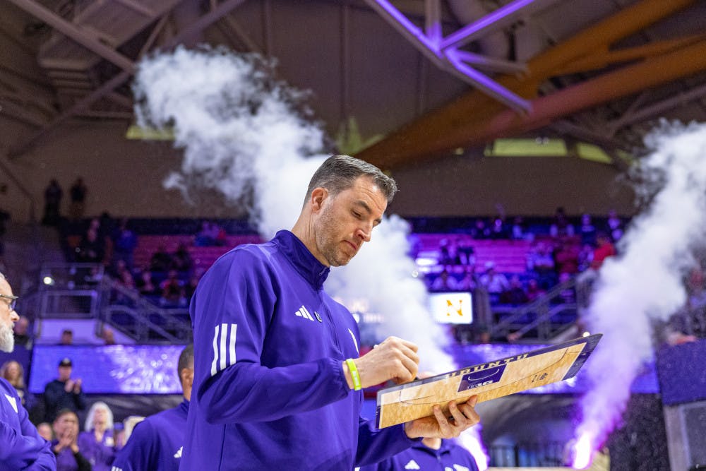 Washington Men's Basketball head coach Danny Sprinknle draws up plays before the Huskies take on Nebraska on February 5th, 2025 inside of Alaska Airlines Arena.