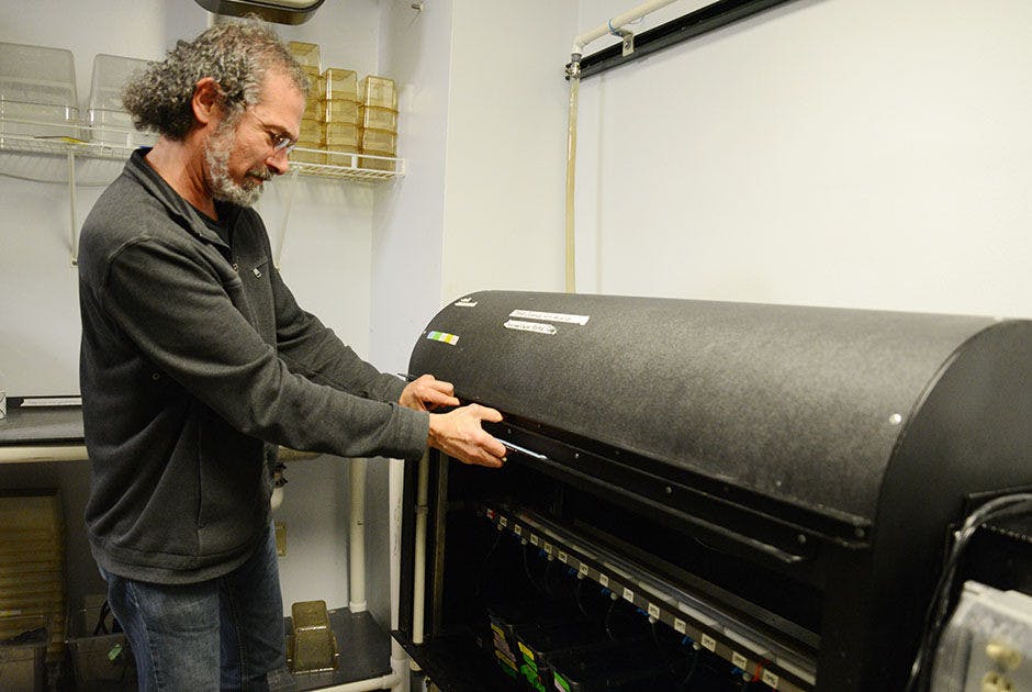 Zebrafish spawning is sensitive to the light cycle. By setting certain zebrafish tanks in a light- controlled environment, professor of biochemistry David Kimelman can control their spawning cycle.