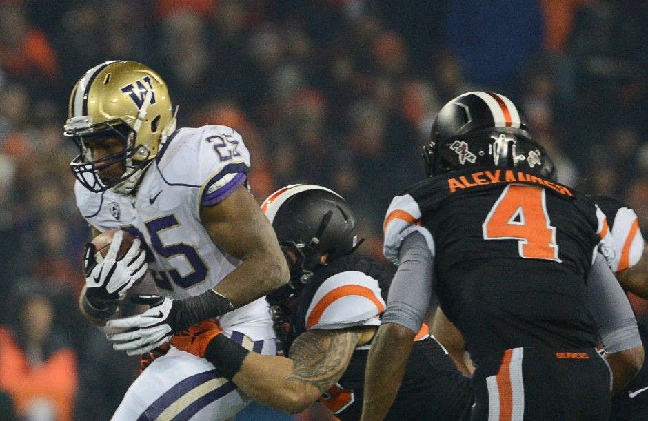 Running back Bishop Sankey finished with 179 yards and three rushing touchdowns against Oregon State and was one of three UW running backs to finish with more than 100 rushing yards against the Beavers.