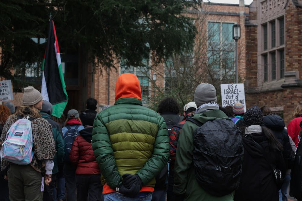 Super UW marches during a protest at the University of Washington Seattle campus on Feb. 5, 2025.