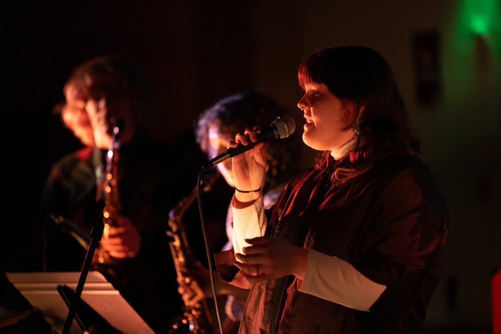 Members of Free The Groundhog perform at the Husky Jam’s “Track 13: Groove Lounge” event at the University of Washington’s Intellectual House on Feb. 21, 2025 in Seattle.