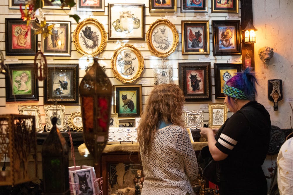 One of the artists, Braden Duncan, is interacting with a patron at Gargoyles Statuary.