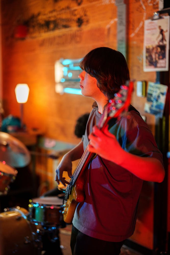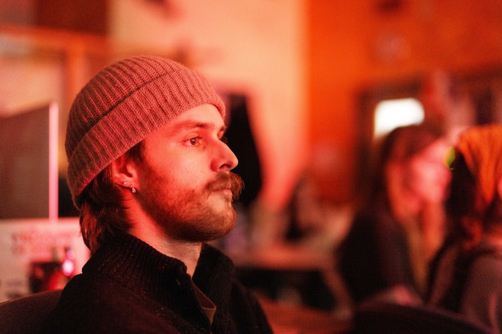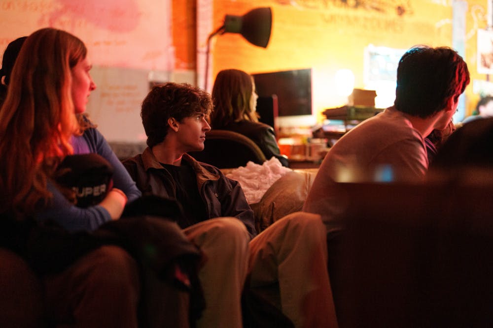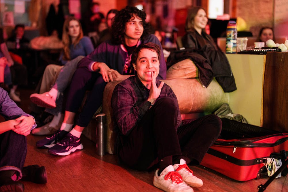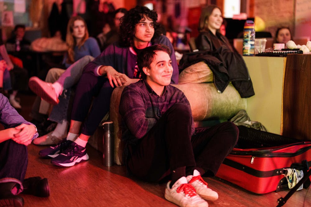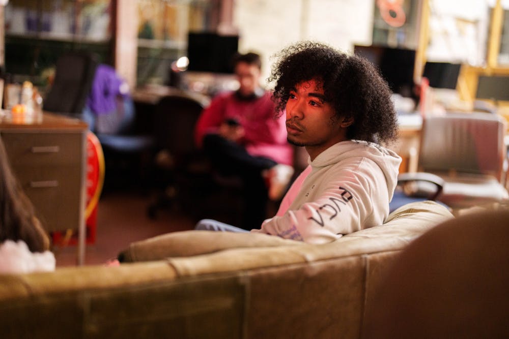 Jack Stern, a photographer for the Daily UW, watches the band Transience perform at an Orange Room Session in The Daily's newsroom (CMU 132) on Jan. 23, 2025 in Seattle.