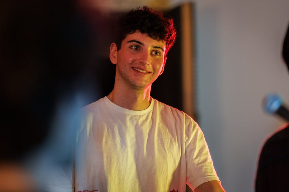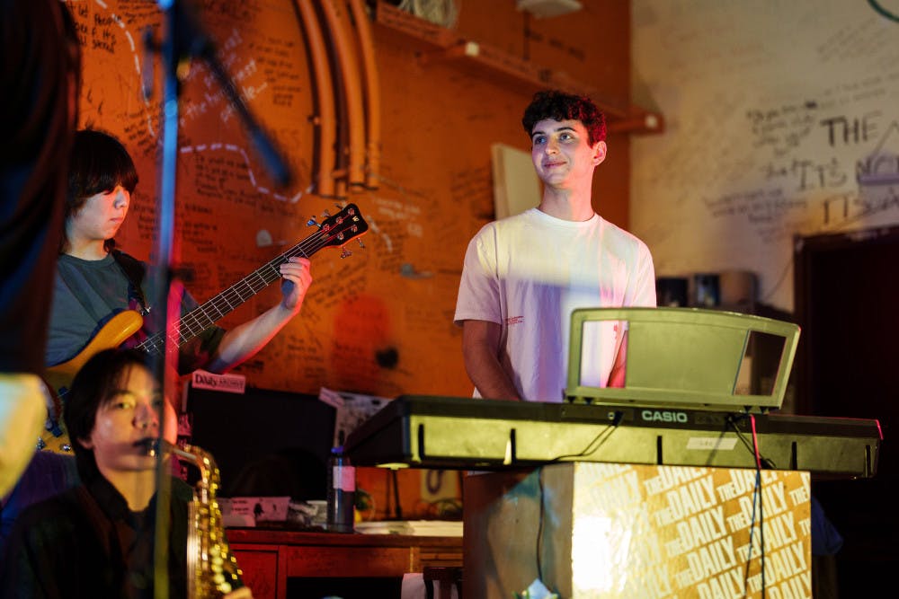 Leo Freedman plays on keys on Jan. 23, 2025 in The Daily's newsroom for the second edition of the 2025 series of Orange Room Sessions.