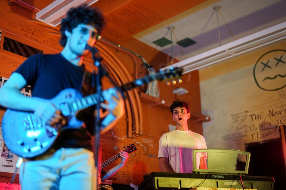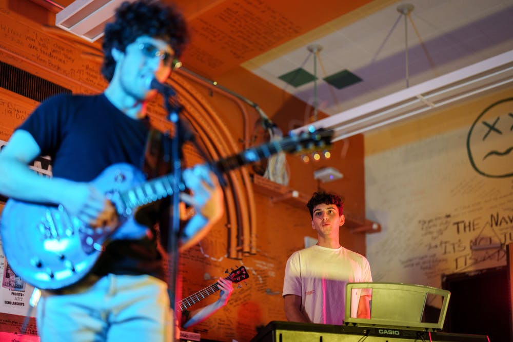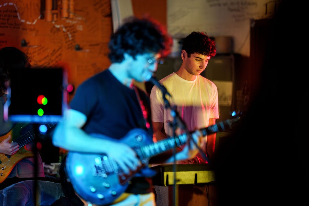 Leo Freedman plays on keys while Zack Leeb performs on guitar and vocals on Jan. 23, 2025 in The Daily's newsroom for the second edition of the 2025 series of Orange Room Sessions.