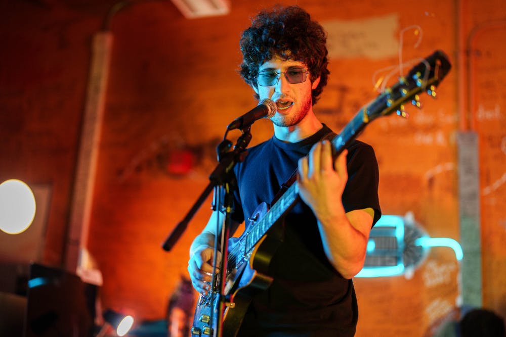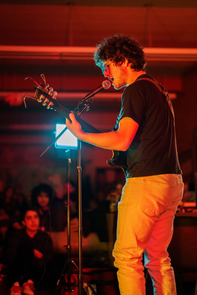 Zack Leeb plays on guitar on Jan. 23, 2025 in The Daily's newsroom for the second edition of the 2025 series of Orange Room Sessions.