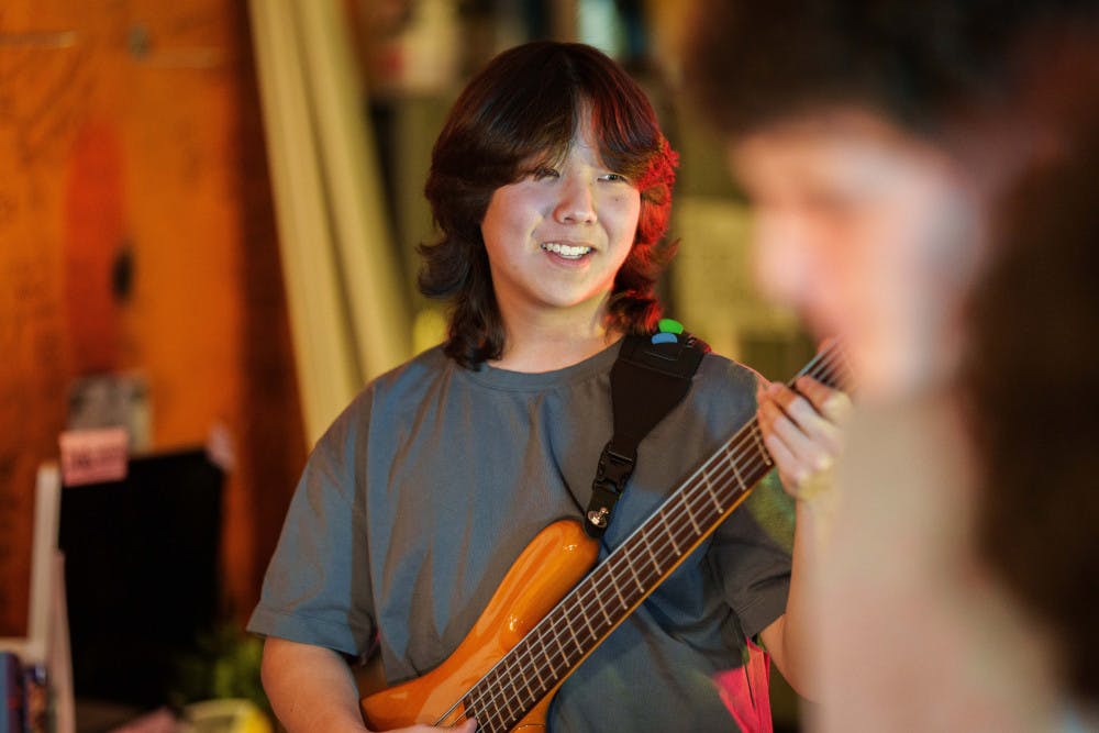 Joonho Choi performs on bass on Jan. 23, 2025 in The Daily's newsroom for the second edition of the 2025 series of Orange Room Sessions.