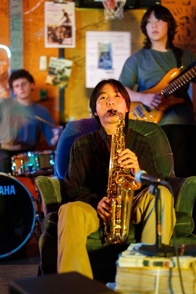 Yuntong Pan plays on saxophone on Jan. 23, 2025 in The Daily's newsroom for the second edition of the 2025 series of Orange Room Sessions.