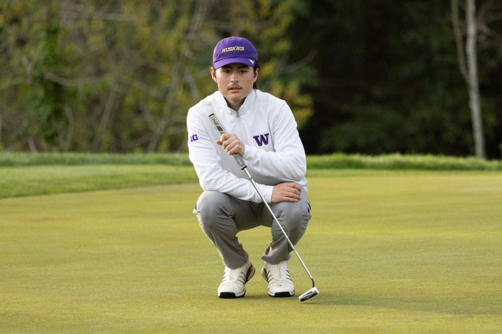 Freshman Jake Foley reads the green at The Goodwin on March 27, 2025 at Stanford University.